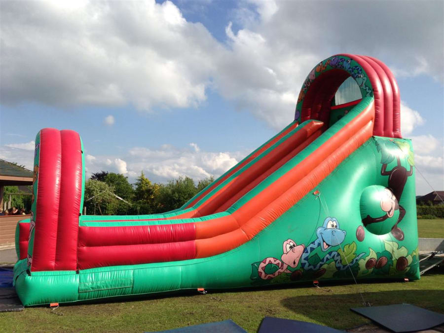 this super slide is great for school fetes, fundays,open days,church fetes, etc it comes supervised by one of our members of staff looks great at any event, with its fantastic artwork it can be seen from far away